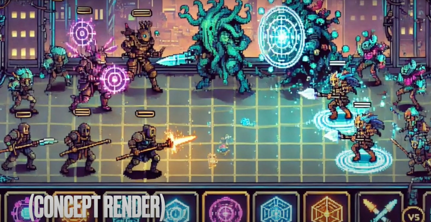 The game system concepts have _completely_ changed since those ideas, as has the art style, factions, and world. I switched to testing 3d models out and I’ll almost certainly build the game in 3d. Here is the original concept I was playing with: